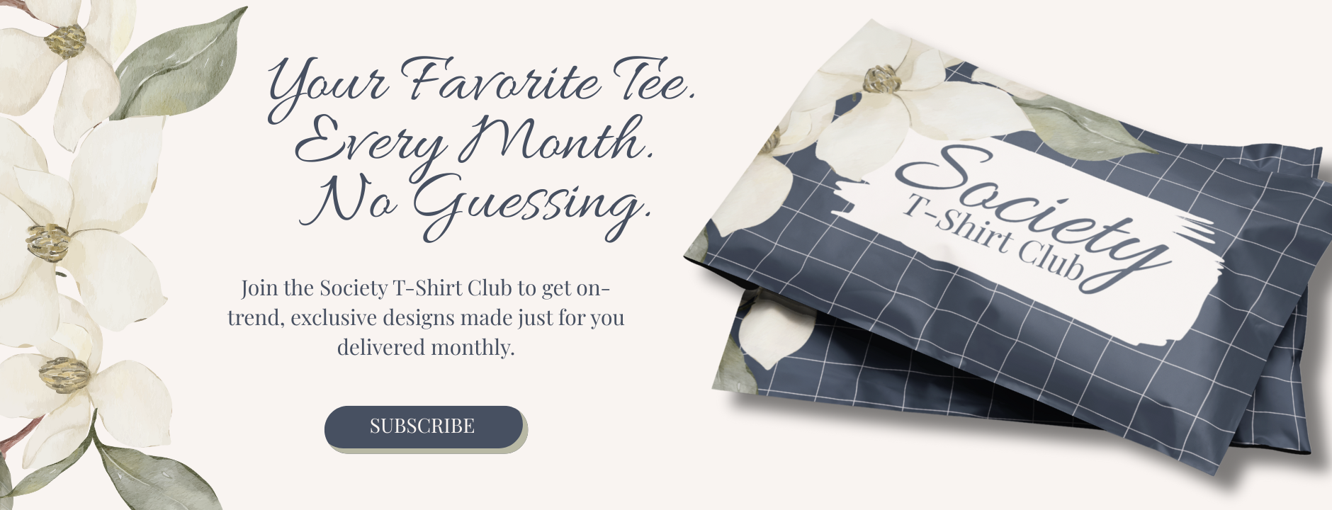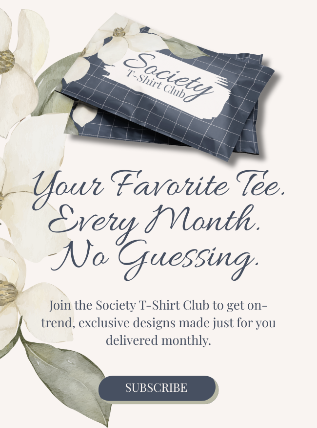 The Society T-Shirt Club is your monthly style refresh in a tee—fun, fresh, and always on trend. Each shirt is designed to match the season, the vibe, and your personality, so you’re never stuck wondering what to wear.