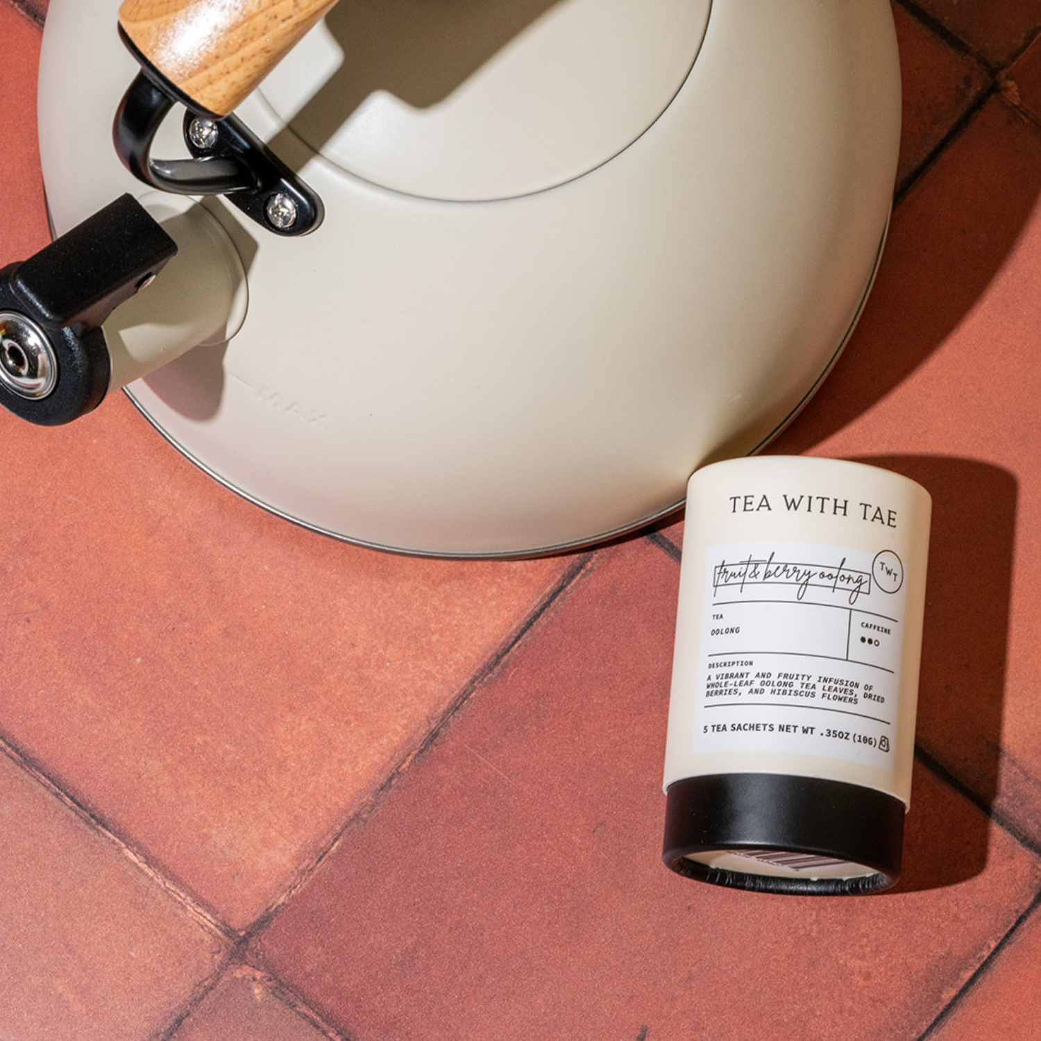 This charming mini tea tube measures 2” wide by 3.5” tall and is crafted from fully recyclable rigid paper. Inside, you’ll find 5 pyramid tea bags made from eco-friendly, plastic-free, biodegradable material, each packed with about 2-2.5 grams of whole-leaf tea and herbs. Most tea lovers enjoy 2-3 steeps per bag!