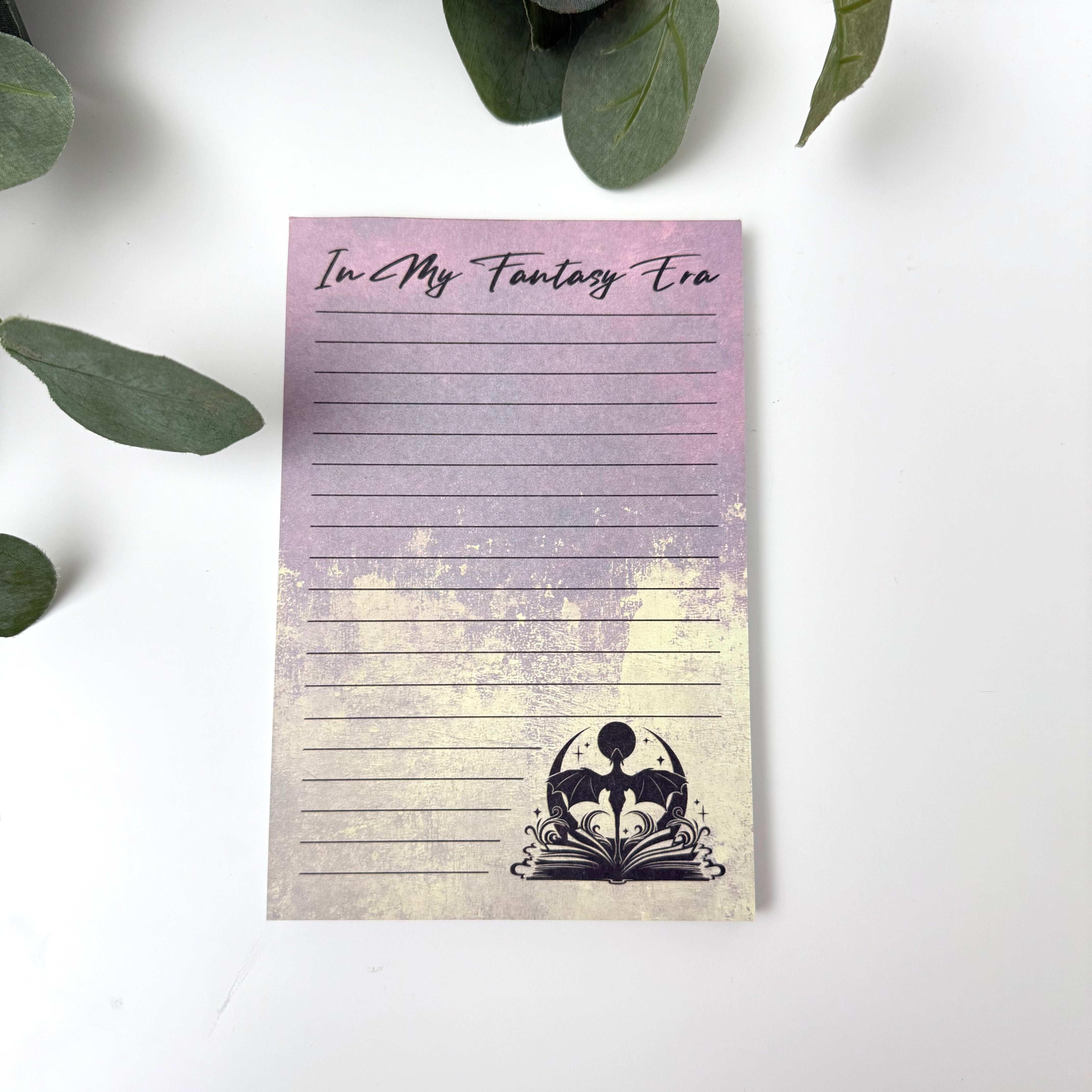 Get your imagination flying with our "In My Fantasy Era Notepad!" This notepad features a fierce dragon on every page, perfect for jotting down all your fantastical thoughts and ideas. Let the dragon inspire your creativity and take your notes to the next level!