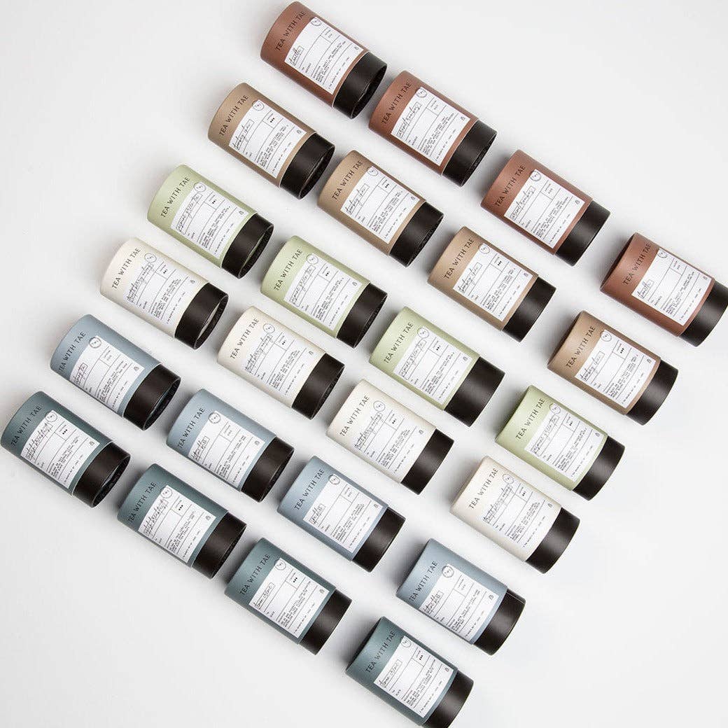 This charming mini tea tube measures 2” wide by 3.5” tall and is crafted from fully recyclable rigid paper. Inside, you’ll find 5 pyramid tea bags made from eco-friendly, plastic-free, biodegradable material, each packed with about 2-2.5 grams of whole-leaf tea and herbs. Most tea lovers enjoy 2-3 steeps per bag!