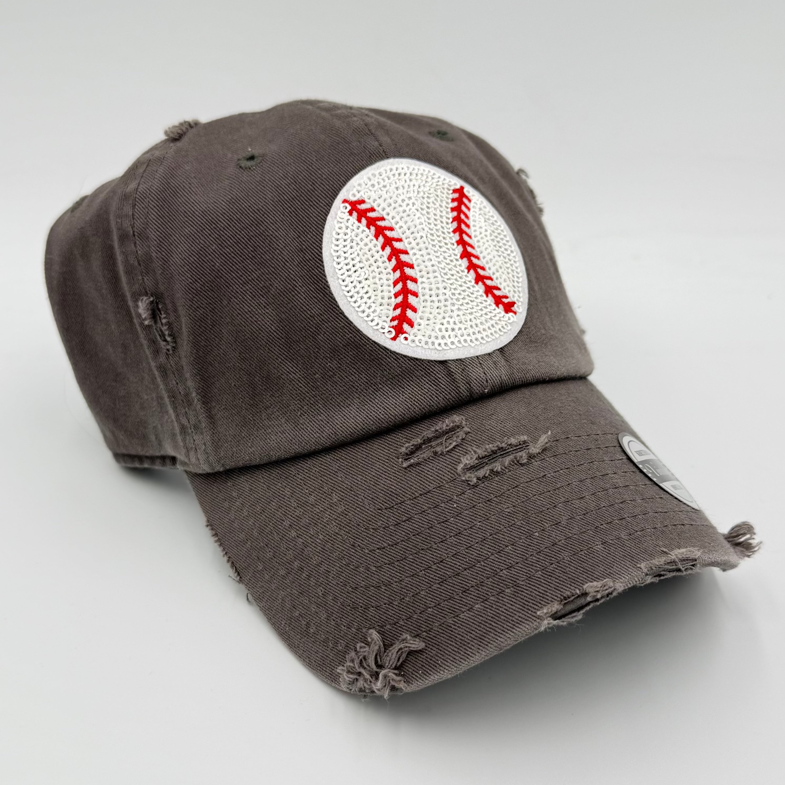 This vintage-washed baseball cap features a sparkling sequin baseball design that adds a fun twist. Made from lightweight, durable cotton, it delivers a soft touch and breathable comfort with its 6-panel, 6-eyelet build. The relaxed, low-profile style and adjustable Velcro strap ensure a cozy fit for all head sizes. Highlighted by contrasting stitching and a brim with charming torn and stitched vintage details, it’s a playful accessory perfect for casual outings. Dimensions: 11" long, 6" tall, 7.5" wide, with a 2.75" brim.