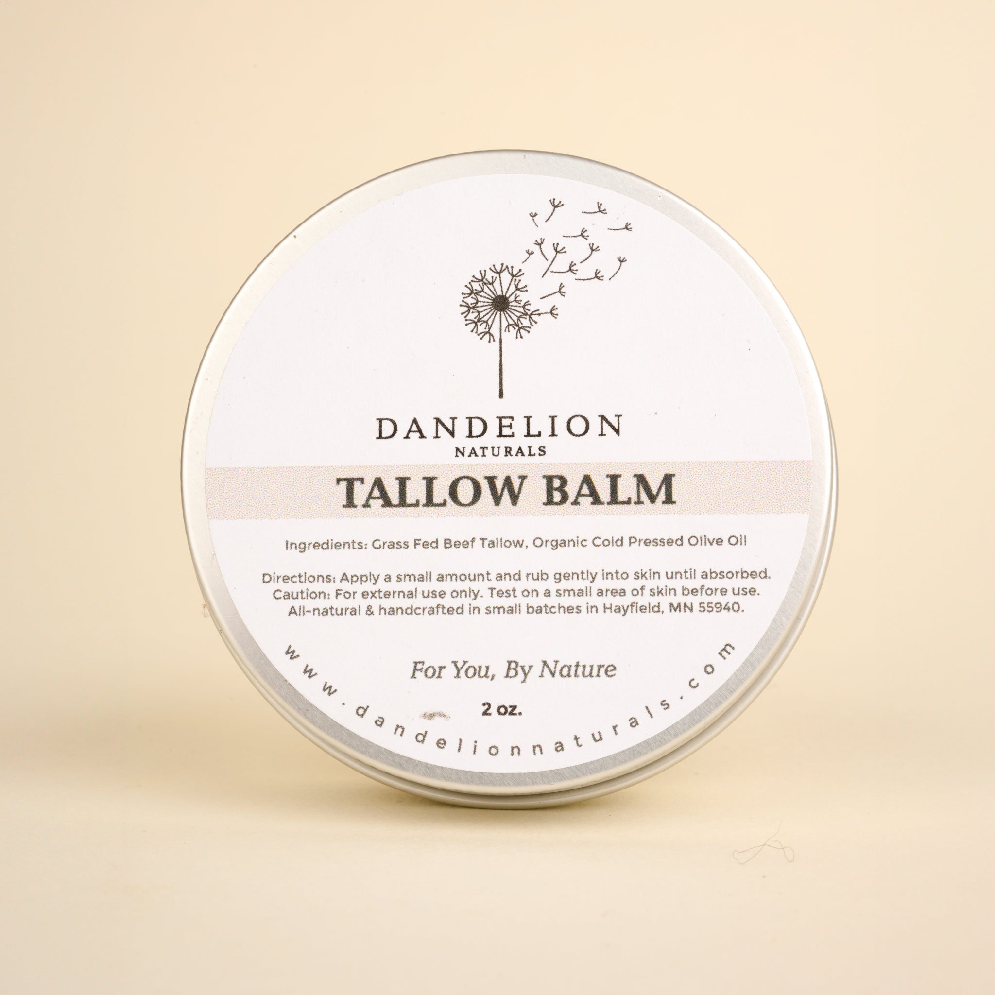 Ingredients: Grass-Fed Beef Tallow and Organic Cold Pressed Olive Oil.